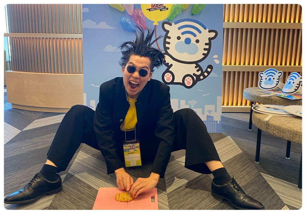 最近、X(旧twitter)で話題沸騰中のメンチニキさん(@menchiniki)もホテルレビューン byGMOのブースに遊びに来てくださいました!!こだわりタイガー君に見守られながら、メンチ切ってました😎