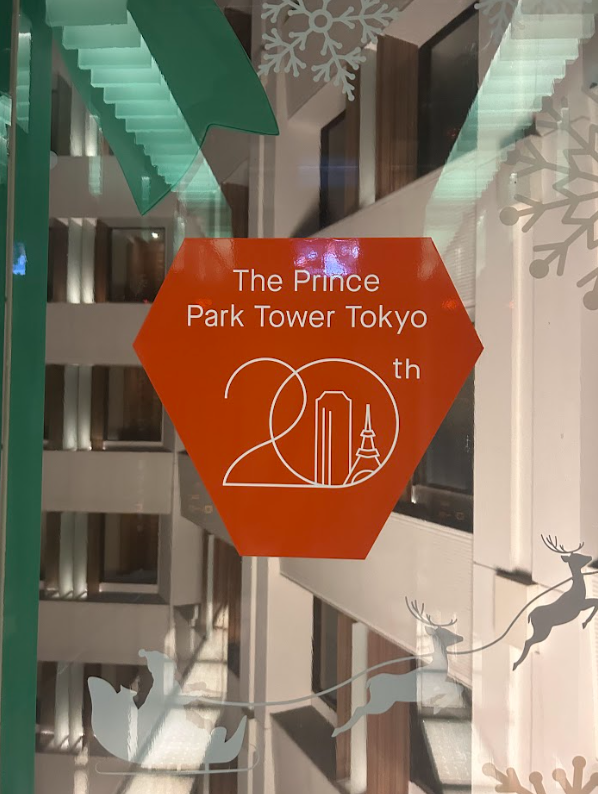 「The Prince Park Tower Tokyo 20th」とデザインされた、鮮やかなオレンジの記念ステッカー✨