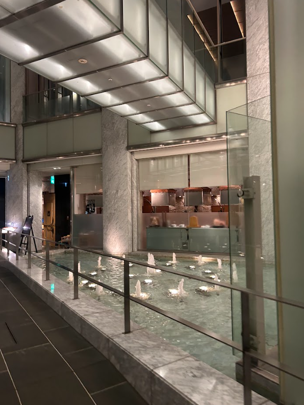 ライトに照らされた噴水がとてもきれいで、ホテル内部でありながら外の庭園を歩いているかのような開放感を感じました!