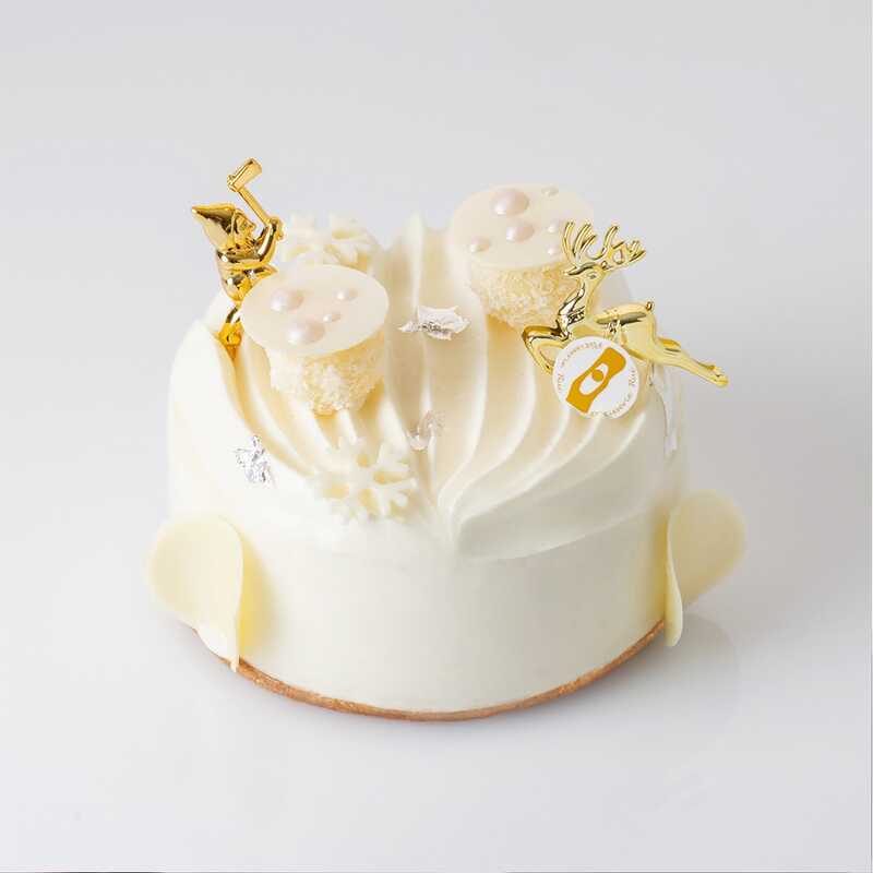 アーモンドの香りが漂うスポンジで、ホワイトチョコレートの優しい甘さとミックスベリーの爽やかな酸味を巻き上げています。一つのケーキで2つの味わいが楽しめるので、「甘いのも酸っぱいのも好き」という欲張りな方にぴったり!美しいデザインは、クリスマステーブルをより一層華やかに彩ります。