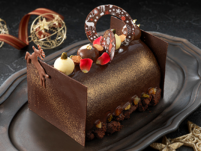 クリスマスの定番である「ブッシュ・ド・ノエル」。この贅沢な美味しさを大切な方と一緒にお楽しみください!