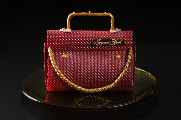 エレガントなバッグに見立てたスペシャルなクリスマスケーキ。上品な香りのロゼシャンパンのムースにローズ、フランボワーズ、ライチを組み合わせた華やかで豪華な特別なクリスマスケーキです。