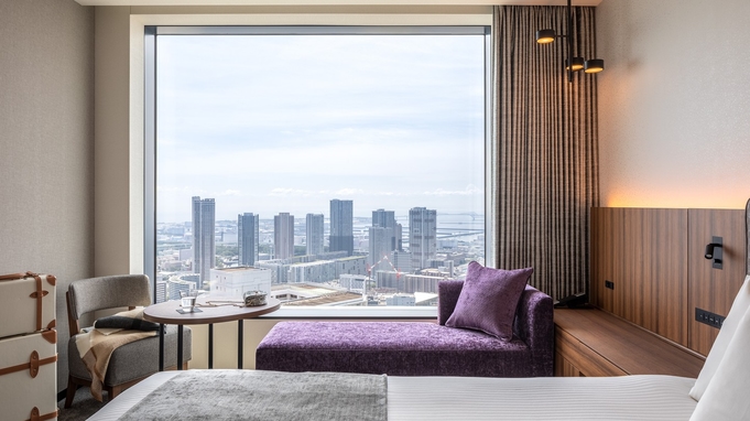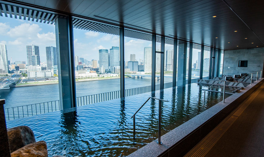 豊洲駅直結の36階建て高層ホテル。全室33階以上に位置し、どの客室からも東京湾と摩天楼の絶景を楽しめます。最上階にはパノラミックなロビーと海に面した大浴場、レストランを完備。
