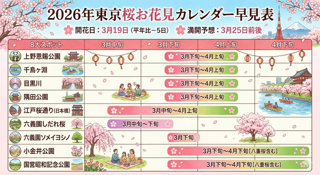 【1】2026年 東京お花見カレンダー|今年はいつが見頃?