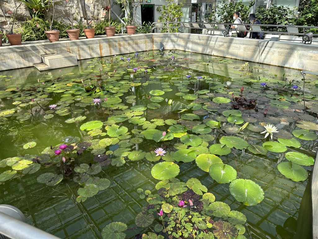 温室内の池では、静かに水面に浮かぶスイレンが迎えてくれます!