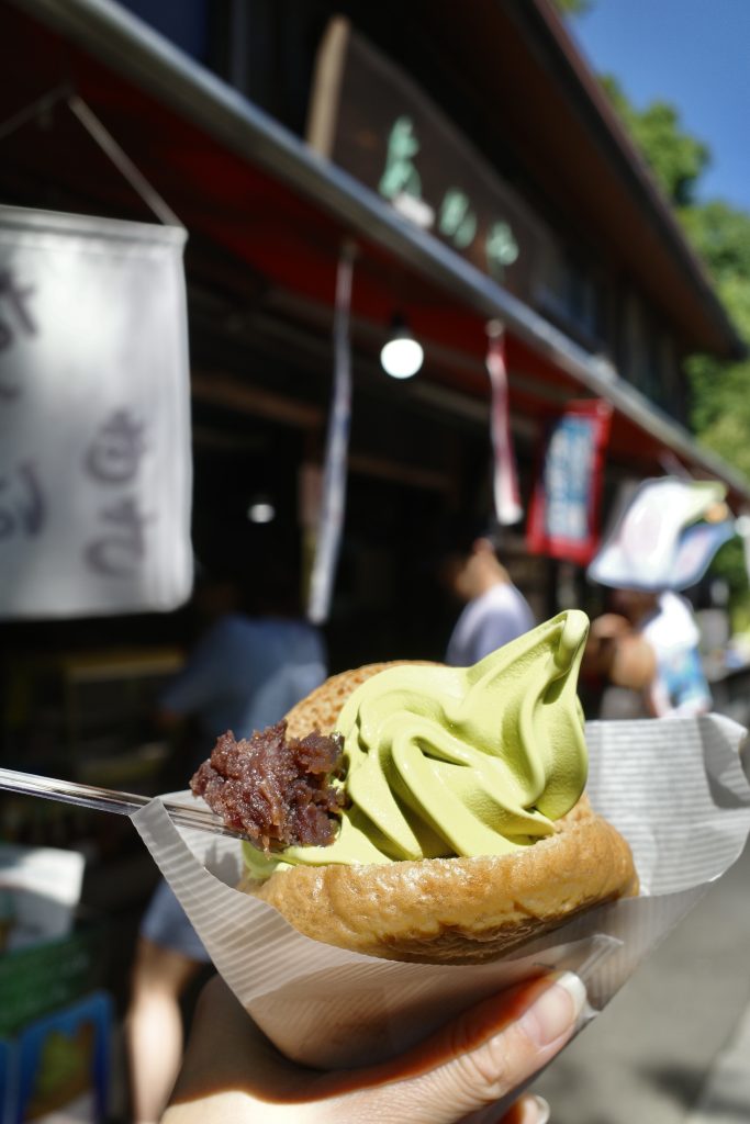 食後の抹茶ソフトは、ほんのり苦味があって甘さ控えめで、歩き疲れた身体にしみるようでした。