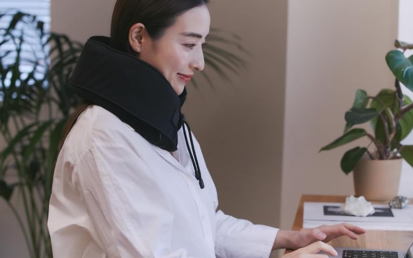 しかし、機内の睡眠環境は過酷です。 エンジン音や照明の変化に加え、最も辛いのが「首の位置が定まらないこと」による首・肩の痛みです。 座ったまま寝ようとすると、頭がガクッと前に落ちたり、不自然な角度で固まったりしてしまい、起きた時に激痛が走ることも少なくありません。これでは、せっかく寝ても疲れが取れるどころか、到着後の活動に支障が出てしまいます。